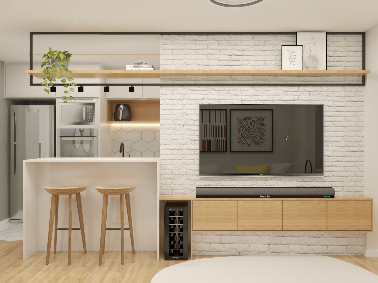 Um casal jovem e descolado procurou a Cabral & Aguiar Arquitetura com a proposta de um ambiente para reunir os amigos, curtir tocando violão e onde os dois pudessem trabalhar home office.
