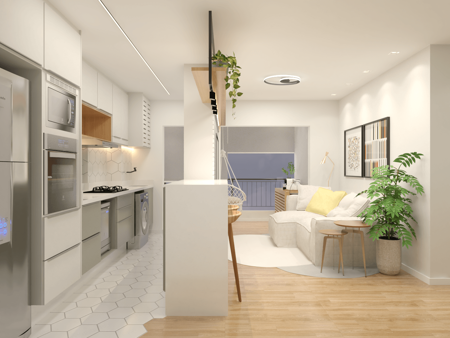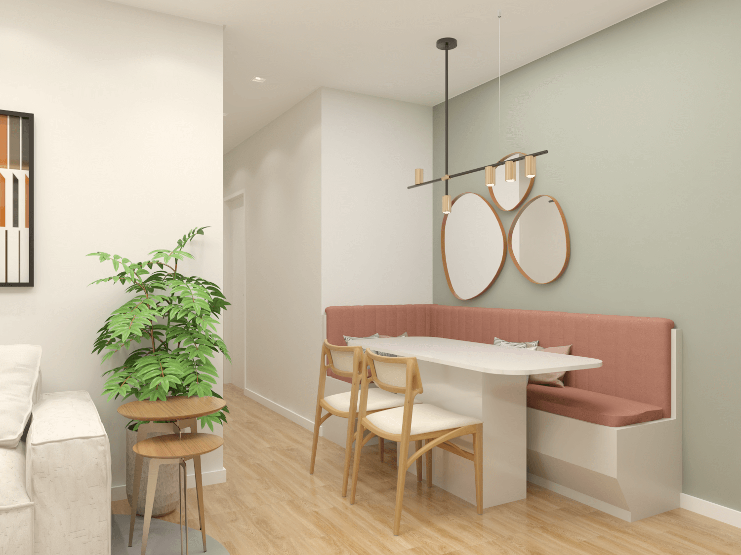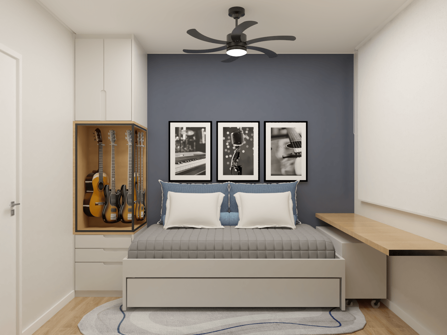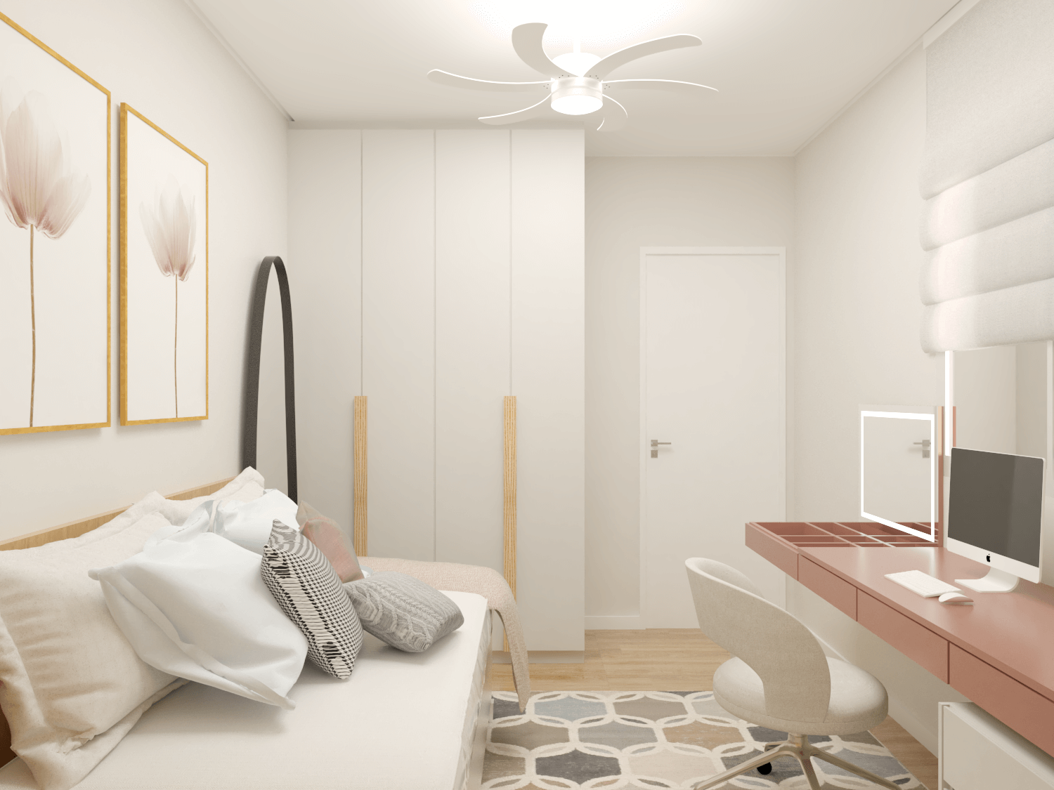 Realizamos o projeto em estilo Boho, que é marcado por cores, estampas e diversos estilos. Deixando o projeto diferenciado e com muita personalidade.