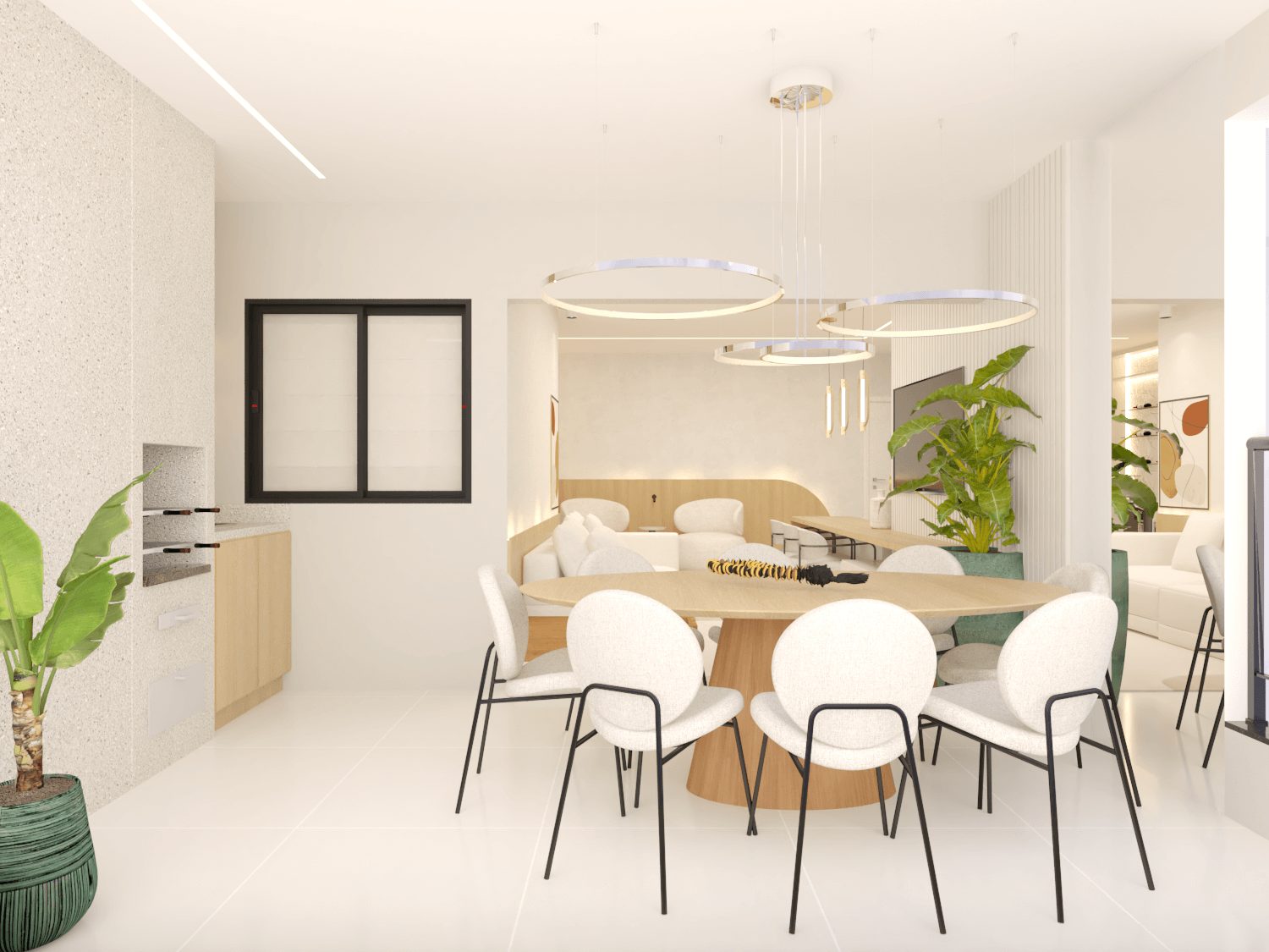 Cores neutras e formas orgânicas compõem esse projeto incrível, deixando os ambientes mais acolhedores.