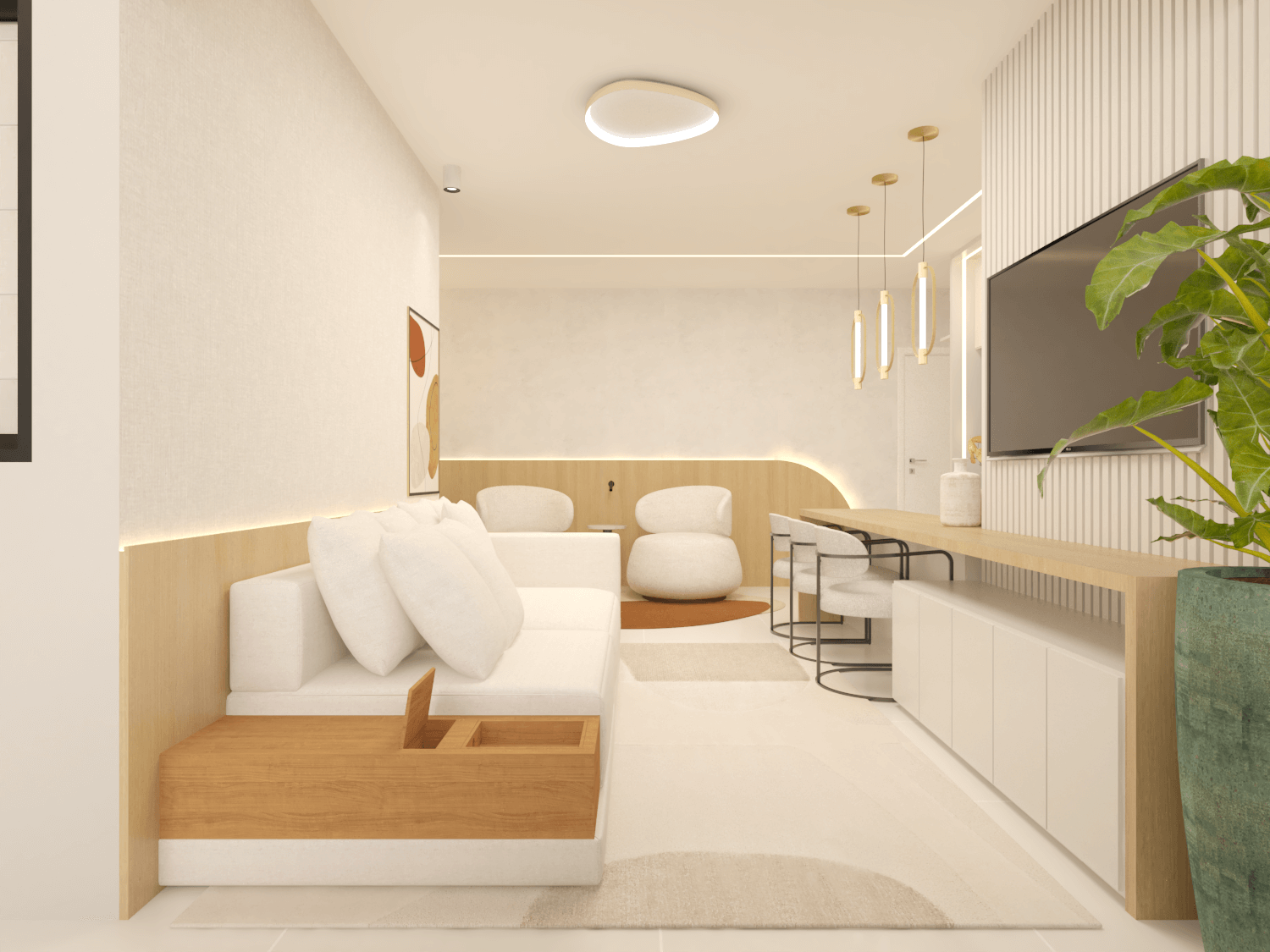 Projeto elaborado pelo nosso escritório Cabral & Aguiar, para um jovem casal com 02 filhos, e que gostam de receber amigos e familiares em casa. É um apartamento de 87m², localizado no ABC Paulista, em Santo André – São Paulo.